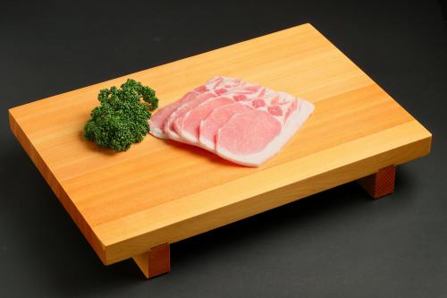 脂と赤身がバランスよく入った旨味のある部分です。くせもなく豚肉本来のおいしさが堪能できます。厚切りのソテーや生姜焼き等に最適な5~6ミリの厚さにスライスいたします。