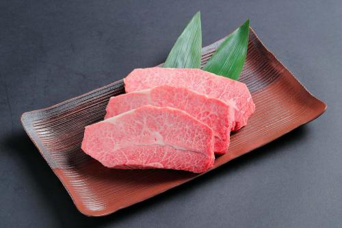 肩部位の中でも動かない部分のお肉です。やわらかく、独特な食感と味を楽しめます。水分量が少ない部位のため、焼きすぎないようにするとおいしさが引き立ちます。中心部にスジがあるのがミスジの特徴。このスジは軟らかいのでご安心下さい。